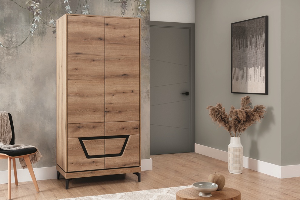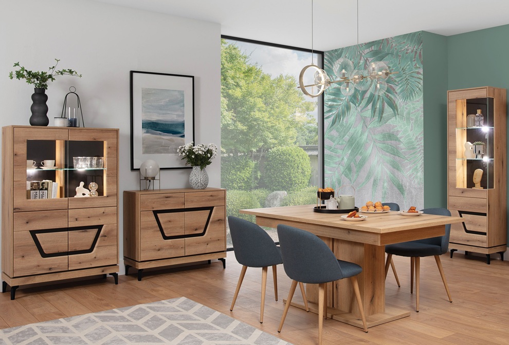prevedenie. Kombinácia dekoru dub evoke a čiernych doplnkov dodáva