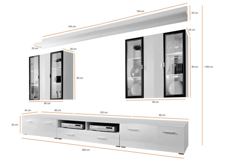 ICELAND biela/čierny lesk, obývacia stena