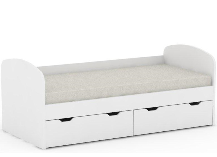 Moderná posteľ pre deti 90x200 s úložným priestorom REA GOLEM do detskej izby je vyrobená z kvalitnej laminovanej drevotrieskovej dosky. A keďže bezpečnosť detí je pre nás prioritou, tak posteľ má na okrajoch zaoblené čelá bez ostrých hrán, ktoré sú spojené pevnou bočnicou. Pod lôžkom na spanie sa nachádzajú dve praktické zásuvky s úložným priestorom napríklad na detské hračky alebo periny, ktoré jednoducho vysuniete vďaka kolieskam na spodnej strane. Odporúčaná hmotnosť jedného jedinca na posteľ je max. 150 kg. V cene postele je masívny smrekový rošt.