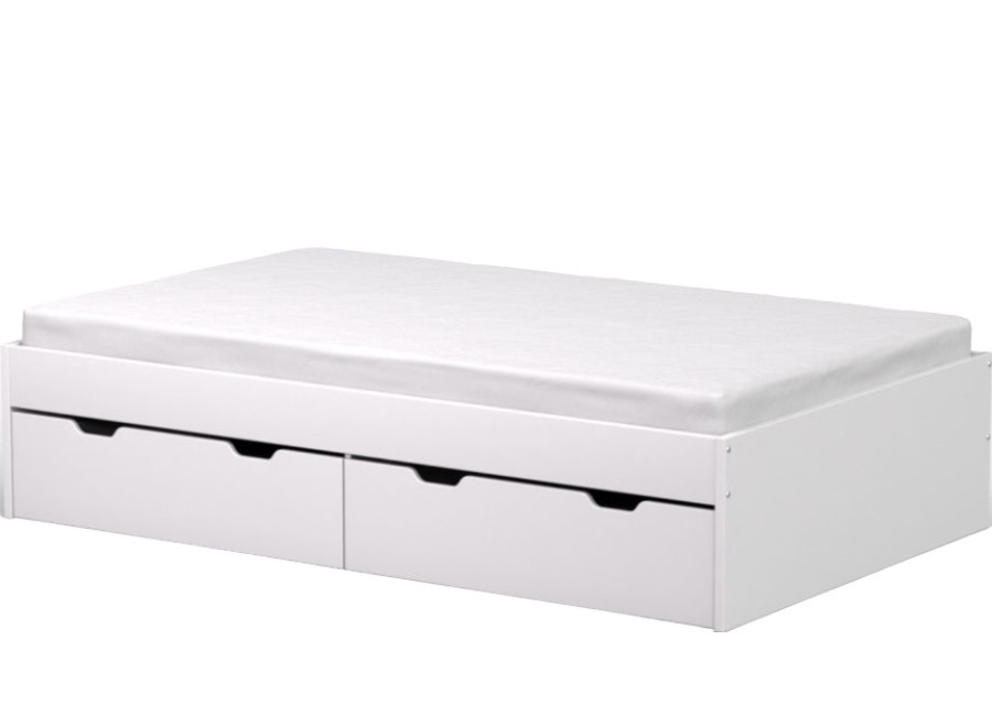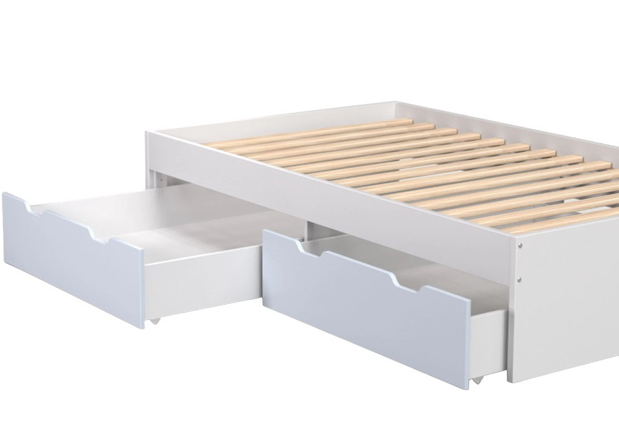 Moderná posteľ do detskej izby REA MISTY je vyrobená z kvalitnej laminovanej drevotrieskovej dosky. Pod lôžkom na spanie sa nachádzajú dve praktické zásuvky s úložným priestorom napríklad na detské hračky alebo periny, ktoré jednoducho vysuniete vďaka kolieskam na spodnej strane. Odporúčaná hmotnosť jedného jedinca na posteľ je max. 150 kg.