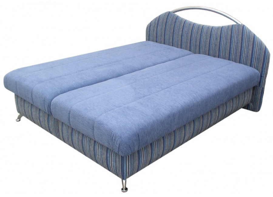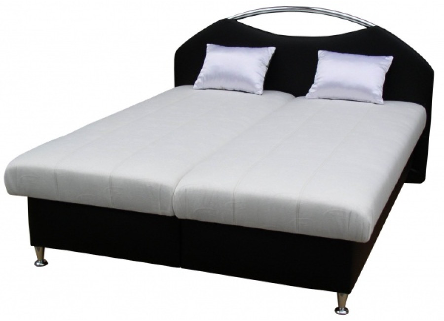 Čalúnená posteľ ARIZONA s úložným priestorom a štýlovým chrómovým doplnkom na čele. Súčasťou postele je pevne začalúnený matrac COMFORT na každodenné spanie.