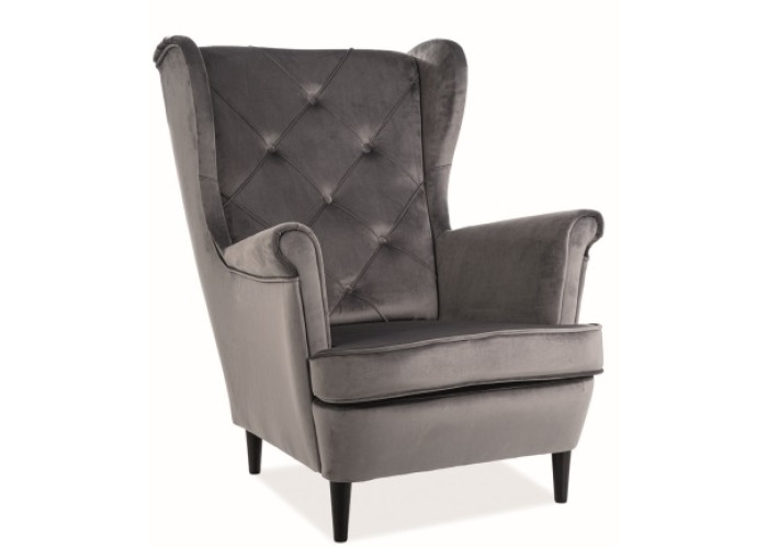 Moderné relaxačné kreslo LADY so zamatovou poťahovou látkou v sivej farbe. Oddýchnite si a naberte silu práve v tomto kresle.