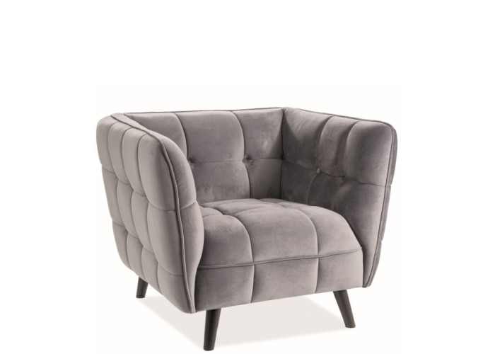 Moderné relaxačné kreslo CASTELLO 1 so zamatovou poťahovou látkou v sivej farbe. Oddýchnite si a naberte silu práve v tomto kresle.
