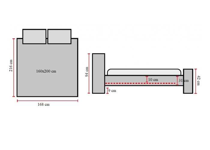 | Celková výška sedu postele | 30 cm + Váš matrac |