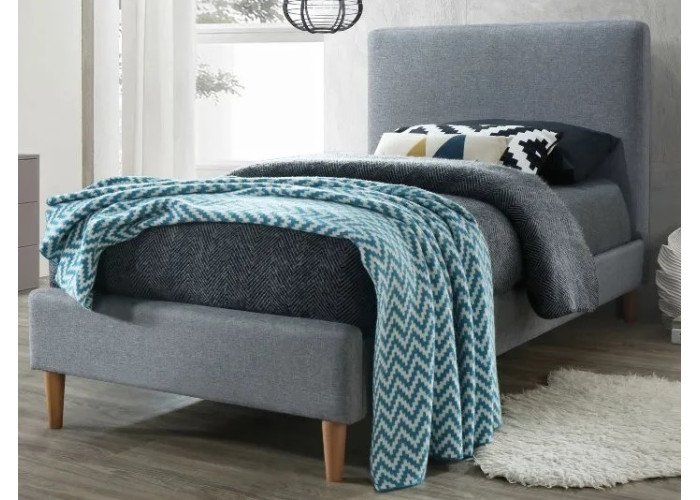- Posteľ s vysokým čelom postele so zaoblenými hranami je čalúnená látkou, ktorá pôsobí esteticky a je príjemná na dotyk.