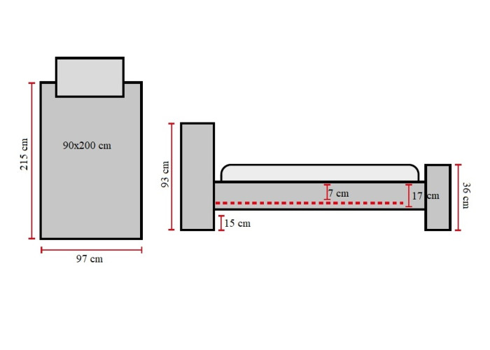| Celková výška sedu postele | 25 cm + Váš matrac |