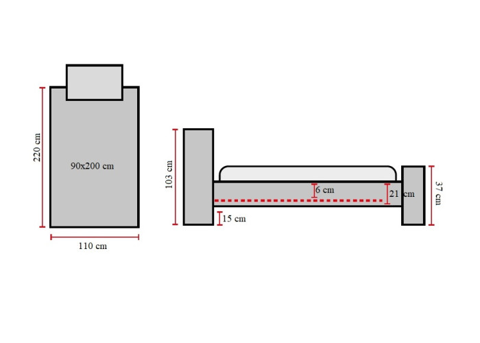 | Celková výška sedu postele | 30 cm + Váš matrac |