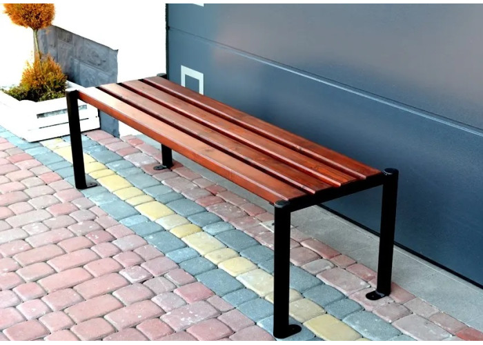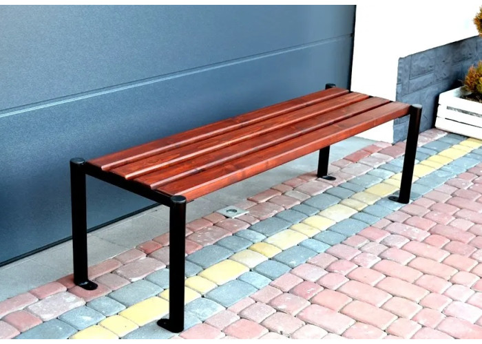 Lavička bez operadla je vyrobená z oceľovej rúry (priemer 48 mm, hrúbka 2 mm), čo zabezpečuje jej stabilitu a dlhú životnosť. Konštrukcia je ošetrená čiernym antikoróznym náterom s práškovým vypaľovaním, čo výrazne zvyšuje jej odolnosť. Kovové časti sú pred lakovaním pozinkované pre lepšiu ochranu pred koróziou. Na želanie môžeme aplikovať akúkoľvek farbu podľa vašich predstáv (je potrebné nás vopred kontaktovať).