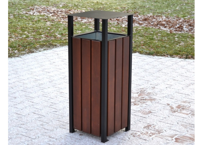 Pre maximálnu ochranu sú všetky oceľové časti odpadkového koša pred lakovaním vždy pozinkované. Oceľ sa dá nalakovať na akúkoľvek farbu z palety RAL podľa Vašich preferencií – stačí nás kontaktovať pre individuálnu úpravu. Dosky na koši sú starostlivo opracované, brúsené, frézované a ošetrené špeciálnym postupom: najprv sú nastriekané základným náterom a potom kvalitným lakom na drevo. Používame trojvrstvovú lazúru, ktorá poskytuje oveľa lepšiu ochranu než bežná impregnácia.