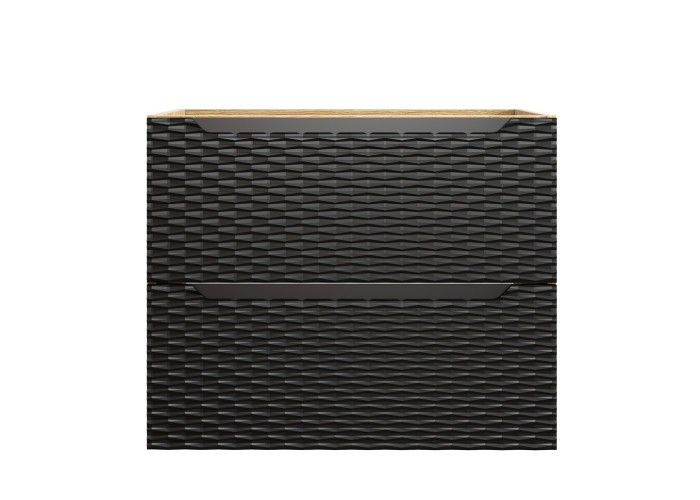 Farebné prevedenie v kombinácii čiernej matnej a dubu olejovaného sa hodí do každého interiéru. Integrované úchytky podčiarkujú minimalistický štýl, ktorý je dnes tak populárny. Skrinka je určená na zavesenie na stenu, čím šetrí miesto a vytvára dojem vzdušnosti v menších aj väčších kúpeľňových priestoroch. Súčasťou skrinky sú dve zásuvky vybavené funkciou tichého zatvárania. Pre maximálne využitie úložného priestoru v hornej zásuvke odporúčame k skrinke zakúpiť plochý sifón.