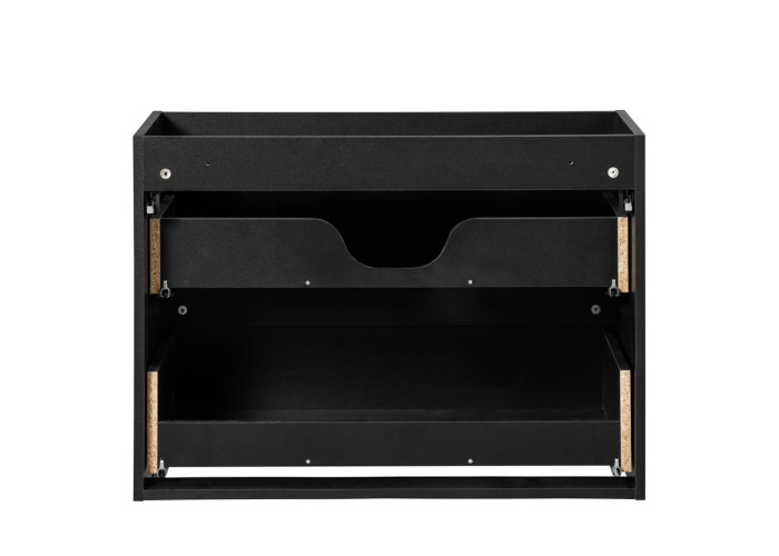 Skrinka pod umývadlo s vrchnou doskou NOVA Black 82-80-2S-DD je elegantným doplnkom do modernej kúpeľne. Ide o skrinku pod umývadlo v šírke 80 cm, ktorá ponúka praktický úložný priestor a zároveň vnáša do interiéru výrazný dizajnový prvok. Tento kúpeľňový nábytok je vyrobený z kvalitnej laminovanej drevotriesky a ABS hranami, zatiaľ čo čielka zásuviek sú z MDF materiálu. Predné plochy zásuviek sú moderne zdobené zvislými pásikmi a dopĺňajú ich integrované úchytky. Farebné prevedenie čierna matná dodáva skrinke elegantný vzhľad a dobre sa kombinuje s ostatnými prvkami nábytku do kúpeľne. Vrchná doska je vo farbe dub evoke.