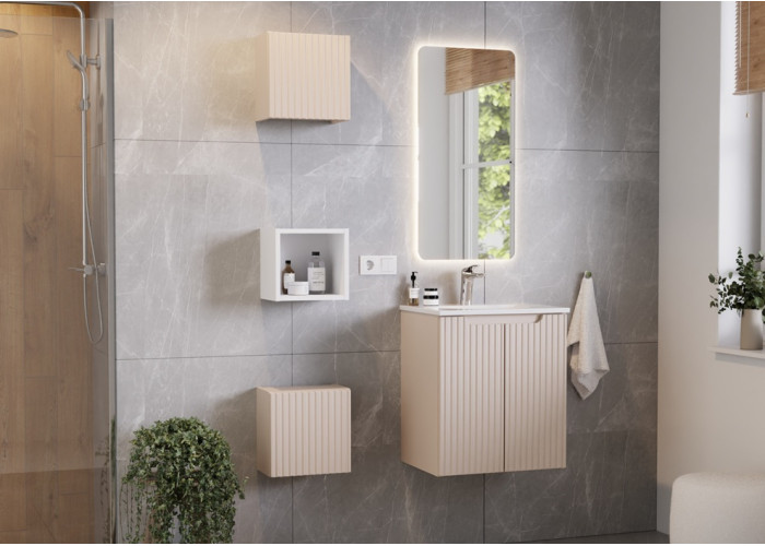 Skriňa do kúpeľne NOVA Cashmere 80-60-39 zaujme na prvý pohľad jemným vertikálnym drážkovaním, ktoré do..