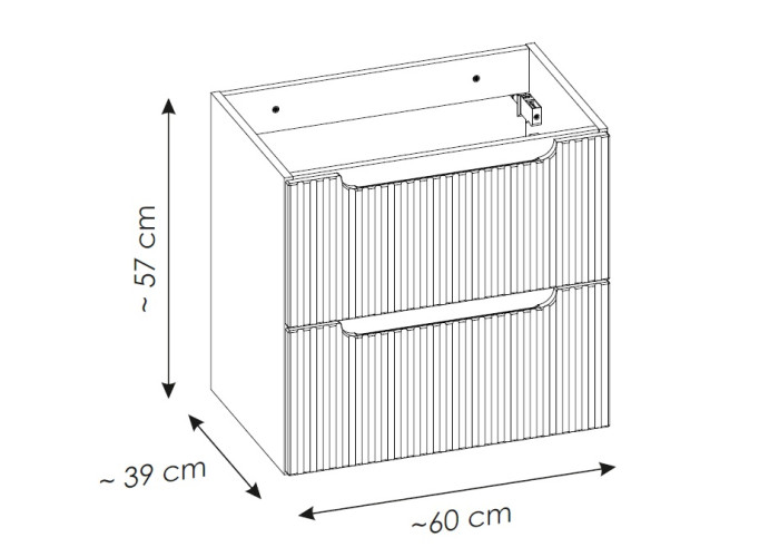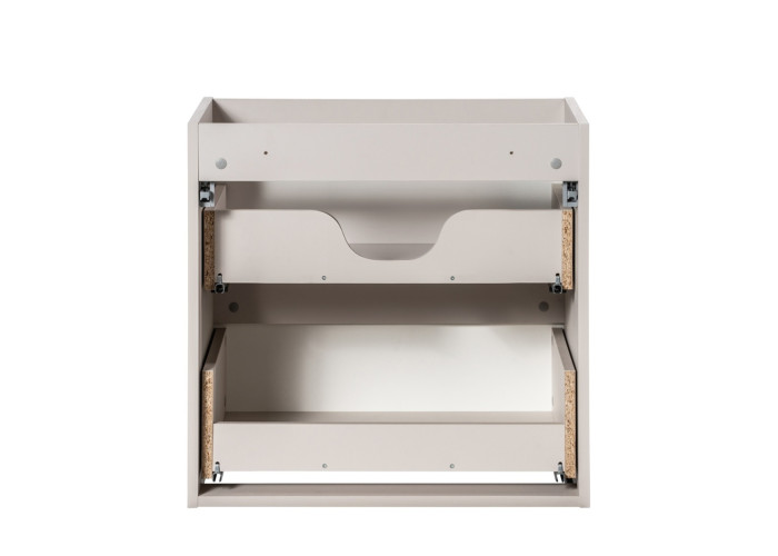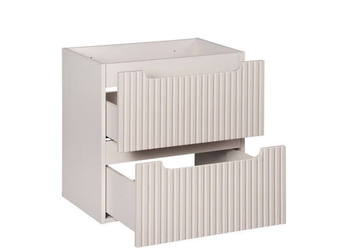 Skrinka pod umývadlo s doskou NOVA CASHMERE 82-60-2S-DD je štýlovým a funkčným riešením pre moderný kúpeľňový nábytok. Ide o zásuvkovú kúpeľňovú skrinku v šírke 60 cm. Je vyrobená z kvalitnej laminovanej drevotriesky s ABS hranami. Čielka zásuviek sú z MDF materiálu a zdobia ich elegantné zvislé frézované pásiky. Moderné integrované úchytky pridávajú celkovému vzhľadu jemnú elegantnosť. Farebné prevedenie v odtieni kašmír (béžová) prináša do priestoru teplý a príjemný nádych. Vrchná doska je vo farbe dub evoke.