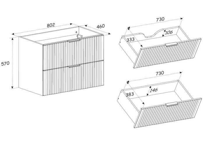 Skrinka pod umývadlo je určená na zavesenie na stenu, čím šetrí priestor a uľahčuje údržbu podlahy v kúpeľni. Disponuje dvoma priestrannými zásuvkami vybavenými funkciou tichého dovierania. Vnútorné usporiadanie zásuviek umožňuje praktické rozmiestnenie kozmetiky, čistiacich prostriedkov či ďalších potrieb. Pre maximálne využitie priestoru v hornej zásuvke odporúčame zakúpiť plochý sifón. Vrchné umývadlo nie je súčasťou balenia.