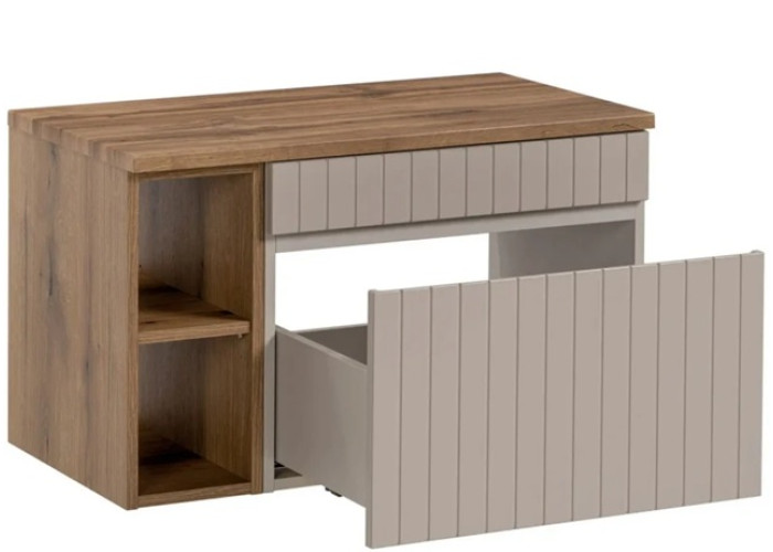 Farebné prevedenie cashmere prináša do priestoru jemný a príjemný odtieň, vďaka ktorému sa skrinka ľahko integruje do rôznych štýlov kúpeľní. Skrinka je určená na zavesenie na stenu, čo výrazne uľahčuje čistenie podlahy a vytvára dojem vzdušného priestoru. Zásuvka je vybavená funkciou tichého dovierania, ktorá zvyšuje komfort pri každodennom používaní. Pre maximálne využitie priestoru Vám odporúčame zakúpiť plochý sifón. Vrchné umývadlo nie je zahrnuté v cene skrinky.