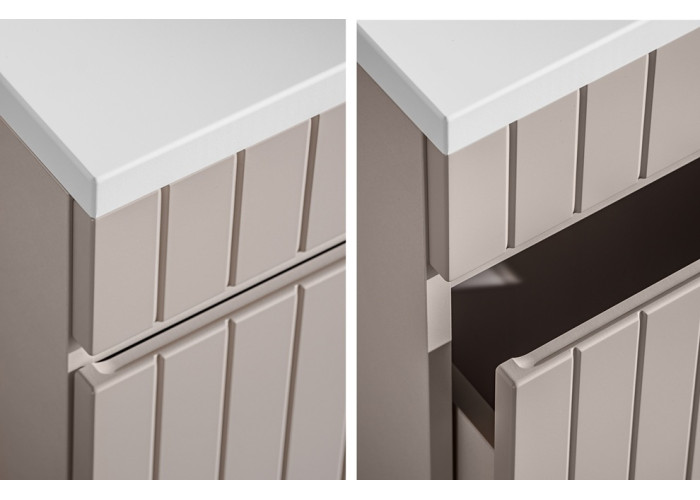 - MDF čielko zásuvky zdobené zvislými drážkami,