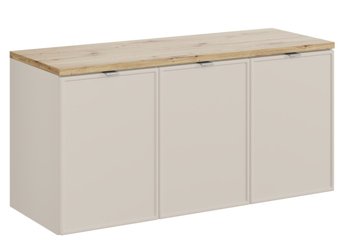Závesný dizajn umožňuje jednoduchšiu údržbu podlahy. Skrinka je vybavená trojicou dvierok s tichým zatváraním, ktoré zaručuje pohodlné a tiché používanie. Vnútorný priestor je ideálny na uloženie rôznych kúpeľňových potrieb od uterákov až po čistiace prostriedky. Pre maximálne využitie priestoru sa odporúča zakúpiť plochý sifón. Vrchné umývadlo nie je zahrnuté v cene skrinky.