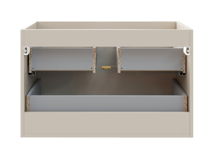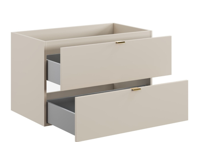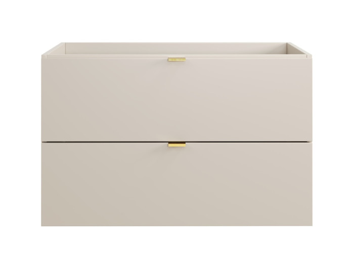 Súčasťou balenia sú 3 farebné sady úchytiek: zlatá lesklá, chrómová lesklá a čierna matná, ktoré môžete ľahko zladiť s kúpeľňovými batériami alebo inými doplnkami. Farebné prevedenie kašmír vnesie do vašej kúpeľne jemný a útulný tón. Ku skrinke odporúčame zakúpiť plochý sifón pre optimálne využitie priestoru. Vrchná doska a umývadlo nie sú zahrnuté v cene, čo vám umožňuje zvoliť si variant podľa vašich predstáv: zápustné umývadlo s rozmermi 80x46 cm alebo vrchnú dosku s vrchným umývadlom.