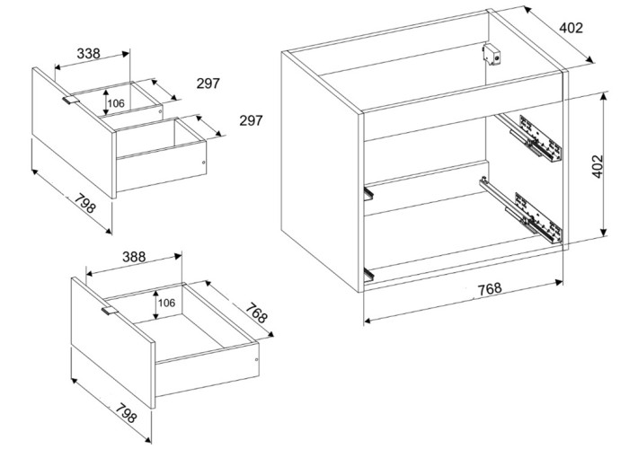 - skrinka je vyrobená z laminovanej drevotriesky s ABS hranami,