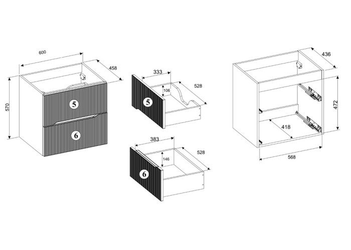 Pre maximálne využitie priestoru môžete do skrinky uložiť čistiace prostriedky, toaletné potreby, ale aj kozmetiku, ktorú potrebujete mať po ruke. Pri montáži skrinky pod umývadlo odporúčame zakúpiť plochý sifón, ktorý Vám umožní využiť hornú zásuvku na maximum. Vrchná doska a umývadlo nie sú súčasťou dodávky, čo vám však dáva možnosť prispôsobiť si kúpeľňu podľa vlastných predstáv. Vybrať si môžete buď zápustné umývadlo s rozmermi 60x46 cm alebo vrchnú dosku s vrchným umývadlom.