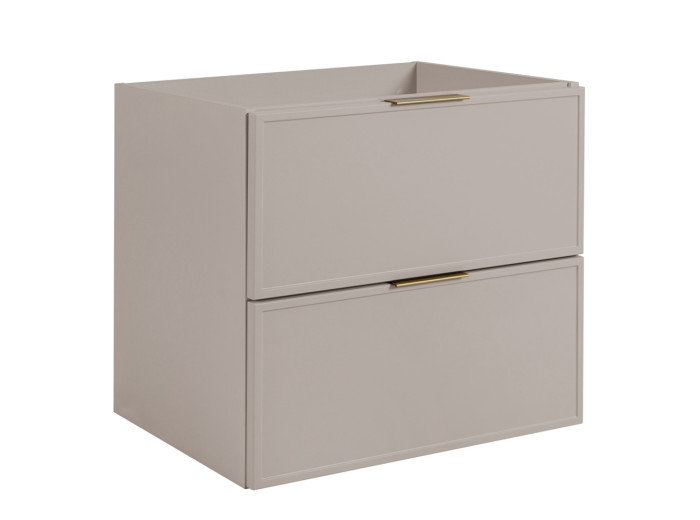 Skrinka pod umývadlo SLIM kašmír K60 je elegantným a praktickým doplnkom vášho kúpeľňového interiéru. Táto kúpeľňová skrinka so šírkou 60 cm je ideálna pre menšie až stredne veľké kúpeľne. Je vyrobená z laminovanej drevotriesky s ABS hranami, pričom jej predné plochy z MDF materiálu sú zdobené jemným úzkym rámčekom, ktorý dodáva celému kusu elegantný vzhľad. Je dostupná v štýlovom farebnom prevedení kašmír, pričom vnútorné časti zásuviek ponúkajú kontrastnú svetlosivú farbu.
