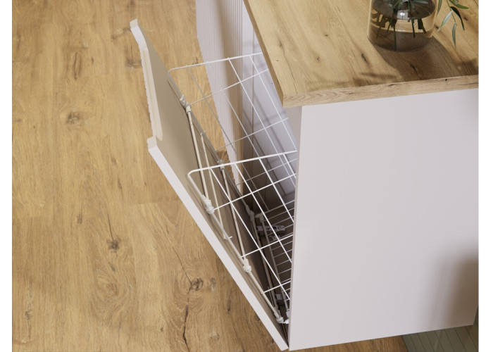 Skrinka do kúpeľne obsahuje kôš na prádlo a môžete ňou rozšíriť napr. skrinku pod umývadlo. Je vyrobená z kvalitnej laminovanej drevotriesky s ABS hranami, pričom dvierka sú zhotovené z MDF materiálu. Predné plochy sú efektne zdobené zvislými pásikmi, ktoré dodávajú skrinke osobitý charakter. Skrinka je určená na zavesenie na stenu, čo uľahčuje údržbu podlahy. Oceníte aj systém tichého dovierania dvierok, ktorý zvyšuje komfort používania. Skrinka má integrovanú úchytku. NOVA CASHMERE 81-40-1DK sa dodáva v elegantnom farebnom prevedení kašmír, ktoré patrí medzi vyhľadávané odtiene medzi béžovými skrinkami do kúpeľne. Tento jemný béžový odtieň sa ľahko kombinuje s rôznymi farebnými akcentmi a doplnkami.
