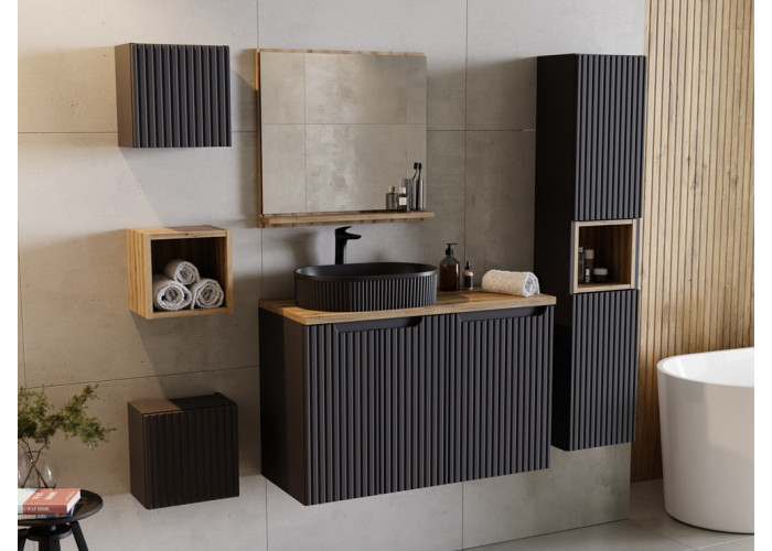 Farebné prevedenie v čiernej matnej farbe dokonale zapadne do moderných interiérov a pôsobí nadčasovo štýlovo. Skrinka je určená na zavesenie na stenu, čo umožňuje efektívne využitie priestoru a zjednodušuje upratovanie pod skrinkou.