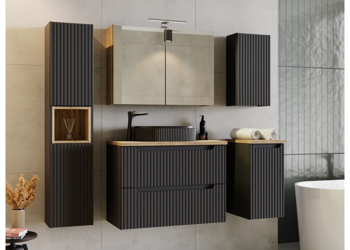 Kolekcia NOVA BLACK ponúka širší výber kúpeľňového nábytku, vrátane skriniek pod umývadlo, vysokých skriniek a závesných skriniek do kúpeľne. Táto séria predstavuje kvalitné skrinky, ktoré spĺňajú praktické aj estetické požiadavky modernej kúpeľne.