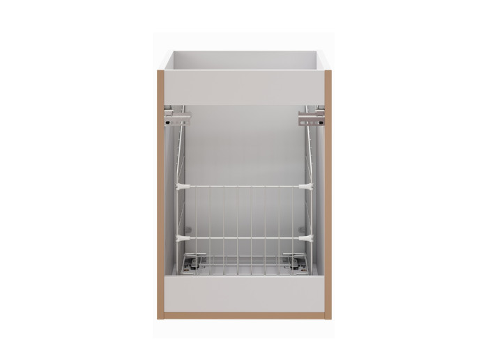 Vo vnútri skrinky sa nachádza praktický kôš na prádlo. Skrinka s košom na prádlo pomáha udržať neželaný neporiadok. Vrchná doska nie je zahrnutá v cene skrinky, čo zákazníkom umožňuje vybrať si materiál a farbu podľa vlastných predstáv.