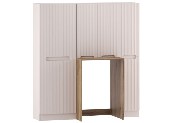 Farebné prevedenie je kašmír + dub evoke, jemný a nadčasový odtieň, ktorý sa jednoducho kombinuje s ďalšími prvkami interiéru. Zafrézované úchytky sú elegantne zapracované do predných plôch a nenarúšajú celkový dizajn nábytku. Dvierka vybavené funkciou tichého dovierania zvyšujú komfort pri každodennom používaní. Zostava je vyrobená z laminovanej drevotriesky s ABS hranami, predné plochy sú z MDF materiálu.