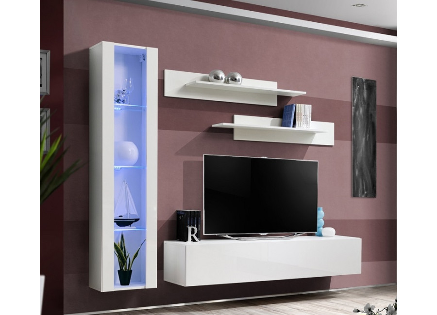Obývacia stena FLY G2 sa skladá z troch častí: z vysokej vitríny, TV stolíka a 2 ks závesných poličiek. Vhodná je najmä do menších priestorov. Dvierka z vysokého lesku sa otvárajú pomocou bezúchytového systému PUSH-CLICK, kedy stačí jemne zatlačiť na dvierka, pre otvorenie a opätovné zatvorenie. Všetky skrinky je potrebné zavesiť na stenu, čo oceníte najmä pri upratovaní.