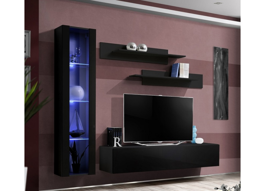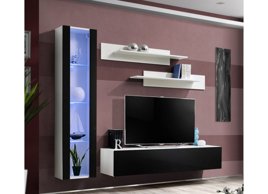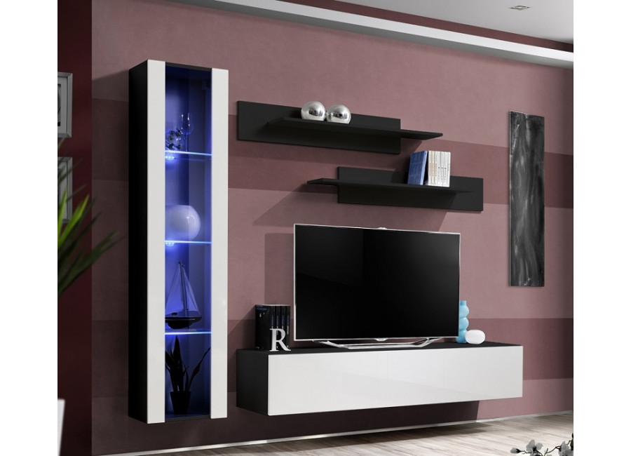 Obývacia stena FLY H2 sa skladá z troch častí: z vitríny s LED podsvietením, TV stolíka a 2 ks závesn&y..