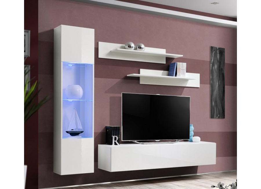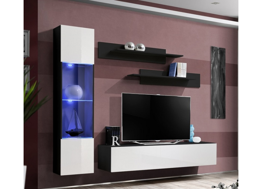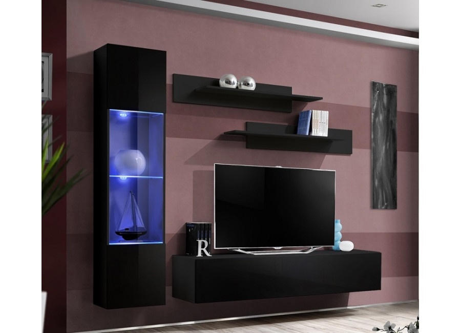 Obývacia stena FLY H2 sa skladá z troch častí: z vitríny s LED podsvietením, TV stolíka a 2 ks závesn&y..