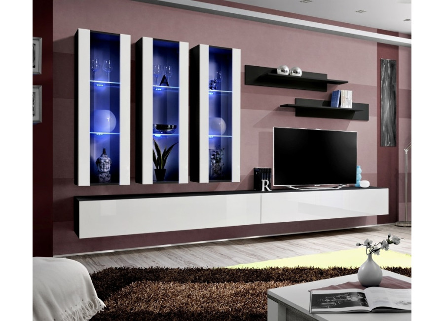 Obývacia stena FLY H2 sa skladá z troch častí: z vitríny s LED podsvietením, TV stolíka a 2 ks závesn&y..