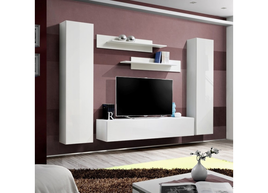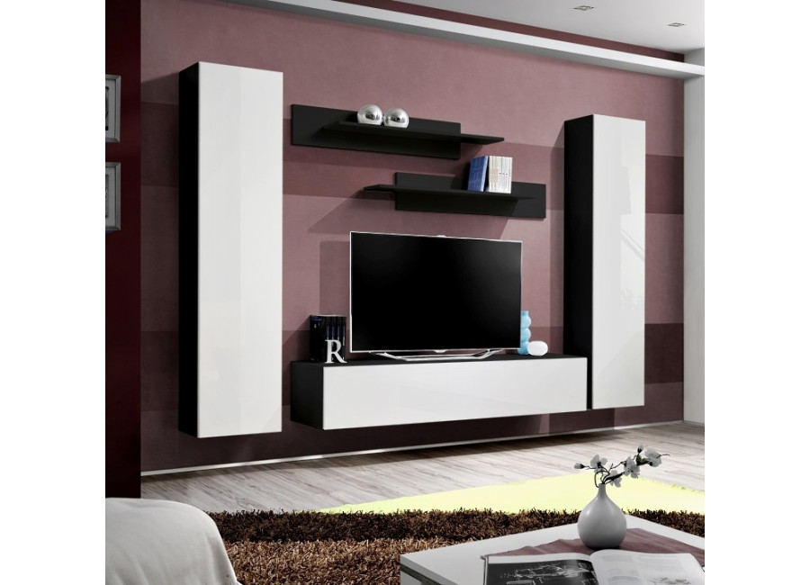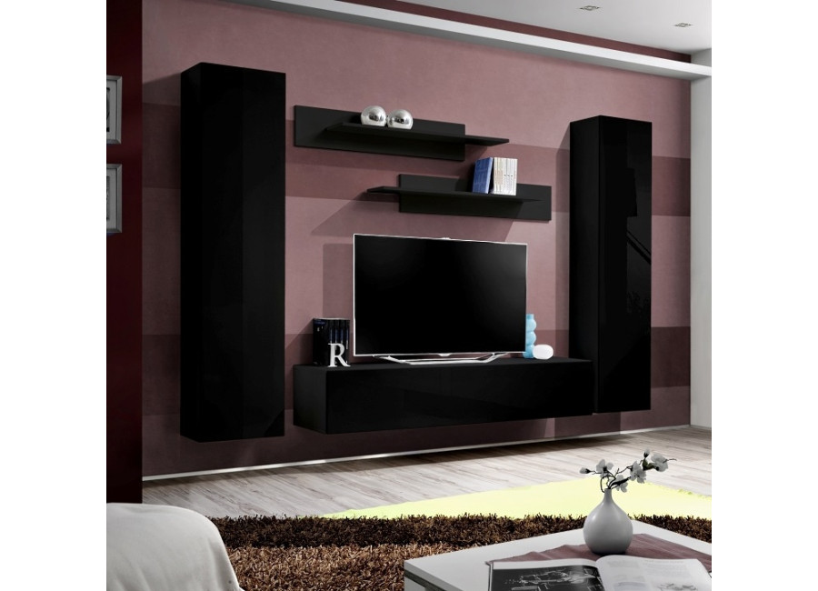 Obývacia stena FLY A1 sa skladá z niekoľkých častí, z 2 ks vysokých skriniek, 1 ks TV stolíka a 2ks závesných poličiek. Vhodná je najmä do moderne zariadených priestorov. Dvierka z vysokého lesku sa otvárajú pomocou bezúchytového systému PUSH-CLICK, kedy stačí jemne zatlačiť na dvierka, pre otvorenie a opätovné zatvorenie. Všetky skrinky je potrebné zavesiť na stenu, čo oceníte najmä pri upratovaní.