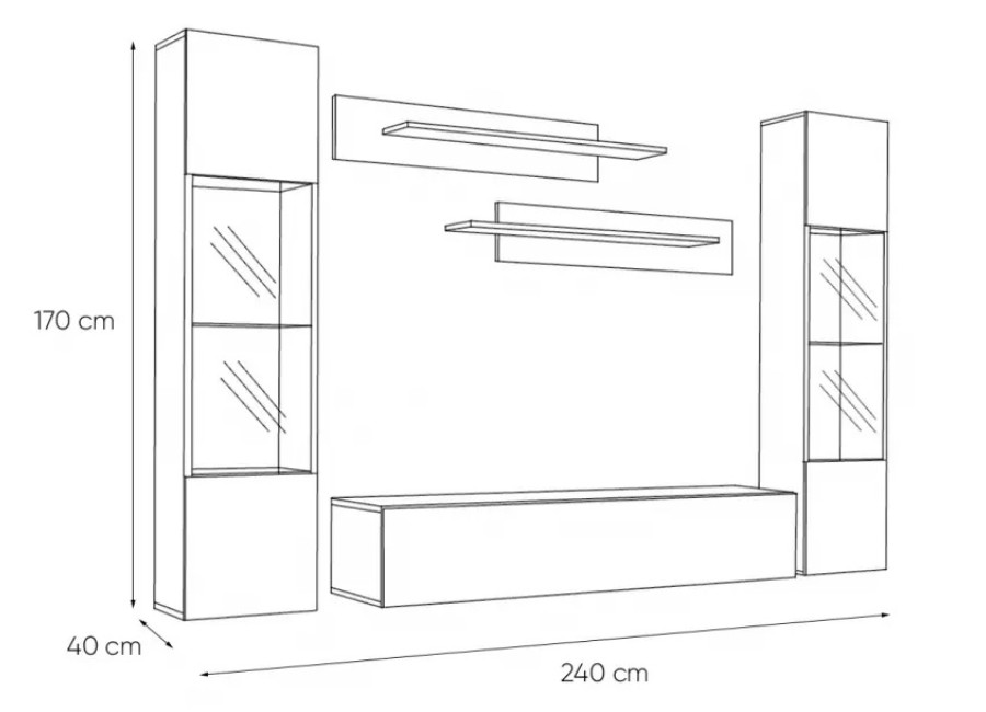 | Šírka | 240 cm (bez medzery medzi skrinkami) |