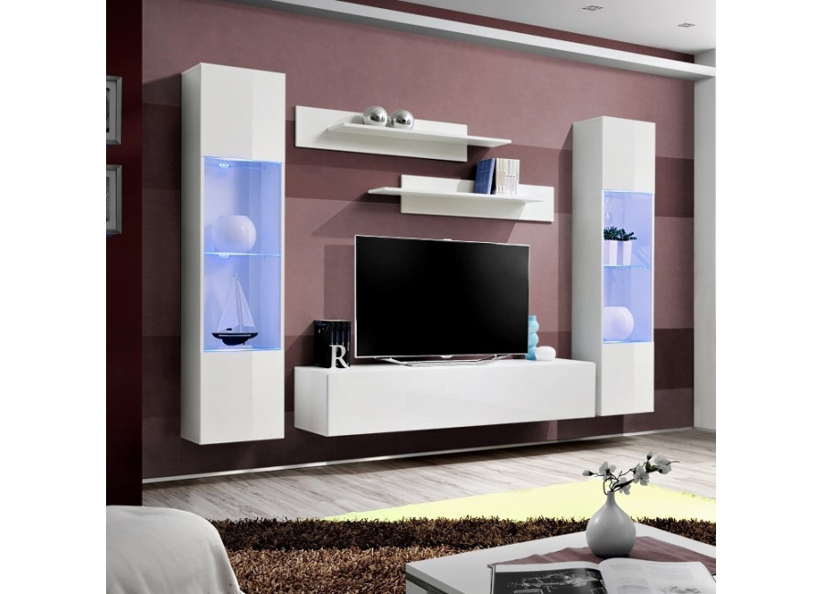 Obývacia stena FLY A3 sa skladá z niekoľkých častí: z 2 ks vysokých vitrín, 1 ks TV stolíka a 2 ks závesných poličiek. Vhodná je najmä do moderne zariadených priestorov. Dvierka z vysokého lesku sa otvárajú pomocou bezúchytového systému PUSH-CLICK, kedy stačí jemne zatlačiť na dvierka, pre otvorenie a opätovné zatvorenie. Všetky skrinky je potrebné zavesiť na stenu, čo oceníte najmä pri upratovaní.