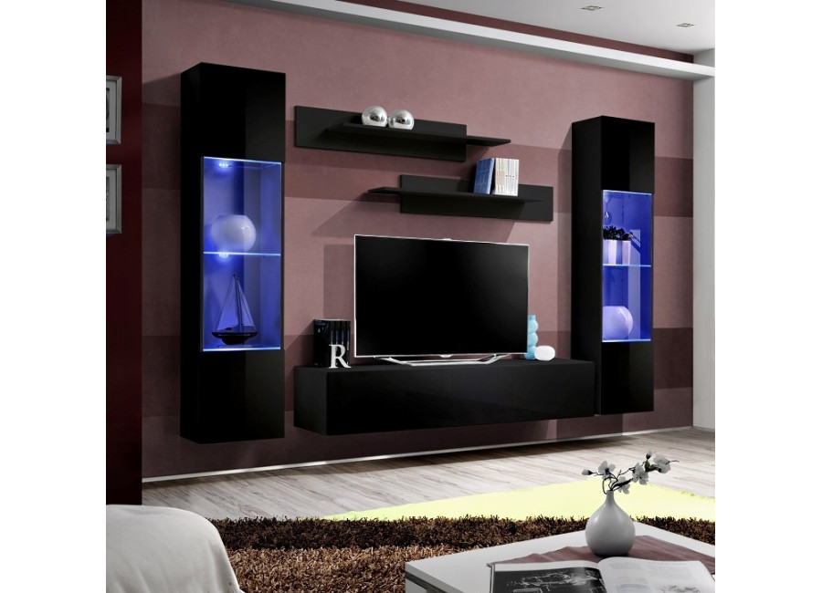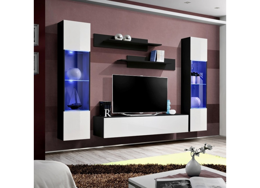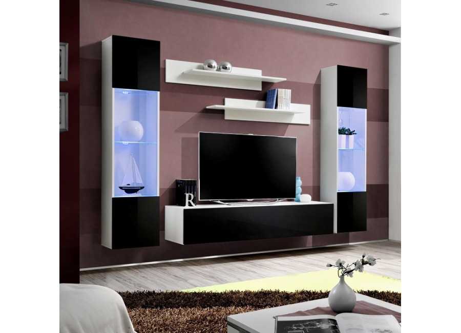 Obývacia stena FLY H2 sa skladá z troch častí: z vitríny s LED podsvietením, TV stolíka a 2 ks závesn&y..