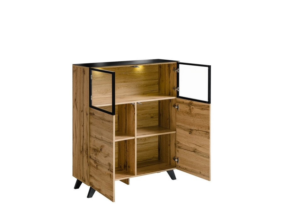 Nábytok Thin je vyrobený z kvalitnej laminovanej drevotriesky. Štýlovo je určený do moderných obývacích izieb. Charakteristickým prvkom sú čierne nohy a horné dosky skriniek. V cene skriniek je LED osvetlenie a spomaľovače na dvierka.