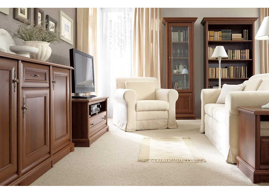Klasický nábytok KENT sa vyznačuje najmä bohatým zdobením, ktoré mu dodáva nádych minulosti. Vyrezávané lišty, sokle a dvierka, jemné kovové úchytky a fazetované hrany skiel vitrín vytvárajú jedinečný nábytok, ktorý prinesie do Vašej domácnosti kúsok histórie..