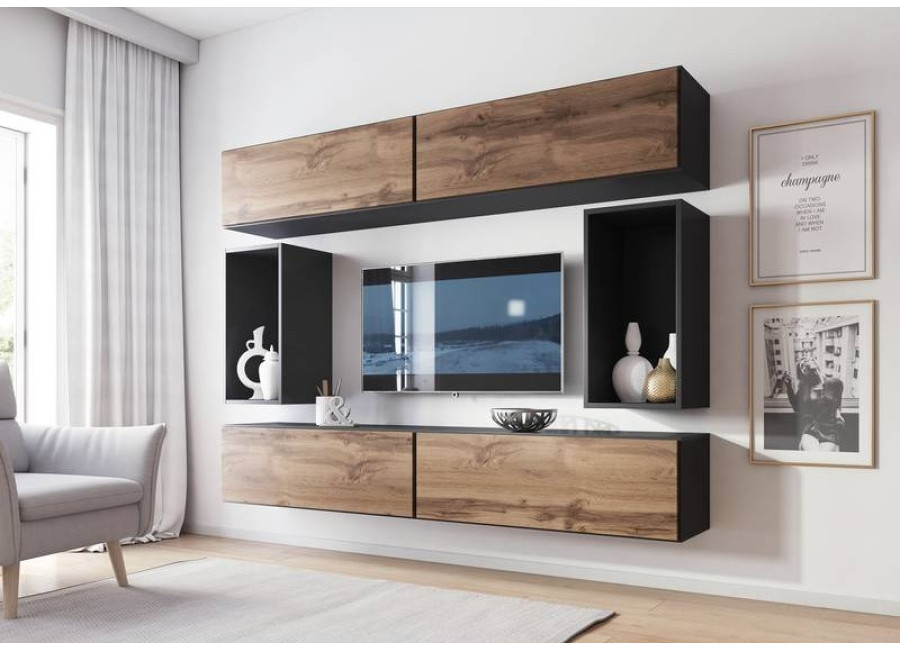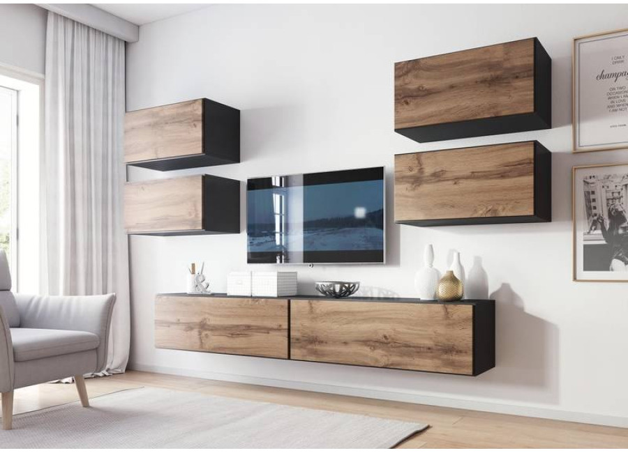 Všetky prvky obývacej steny RAFA sa vyznačujú svojou variabilitou. Sektorové skrinky môžete rozmiestniť ľubovoľne, pre..