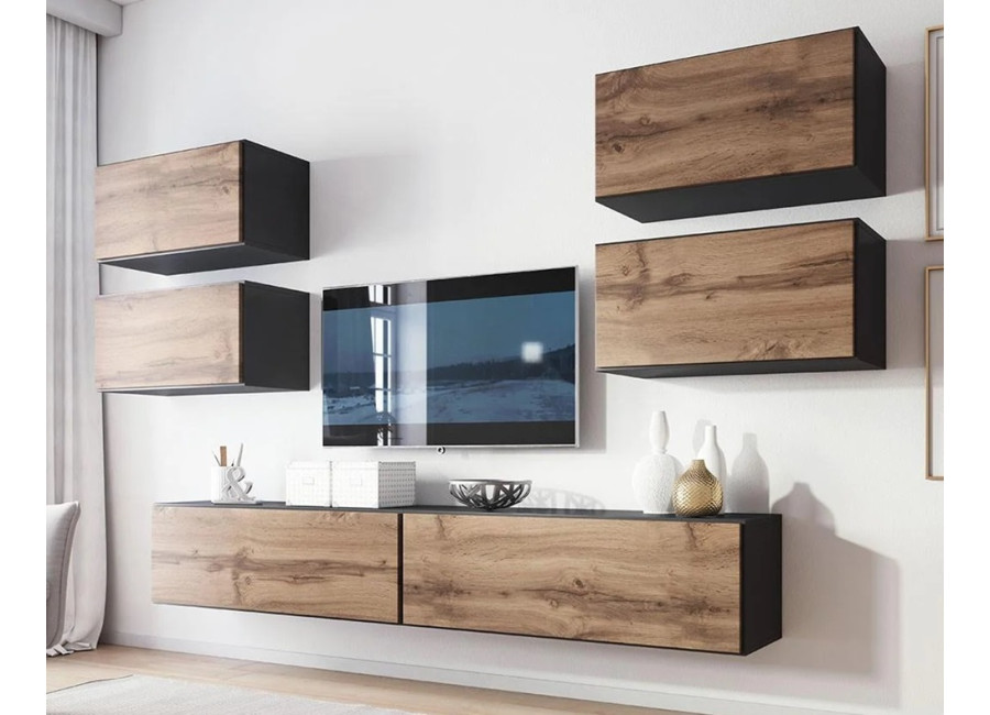 Všetky prvky obývacej steny RAFA sa vyznačujú svojou variabilitou. Sektorové skrinky môžete rozmiestniť ľubovoľne, pretože zostava sa skladá zo samostatných skriniek, ktoré môžete zavesiť v horizontálnom alebo vertikálnom tvare. Obývačkové zostavy si preto môžete, no nemusíte tvarovať podľa predzobrazených rozmiestnení.