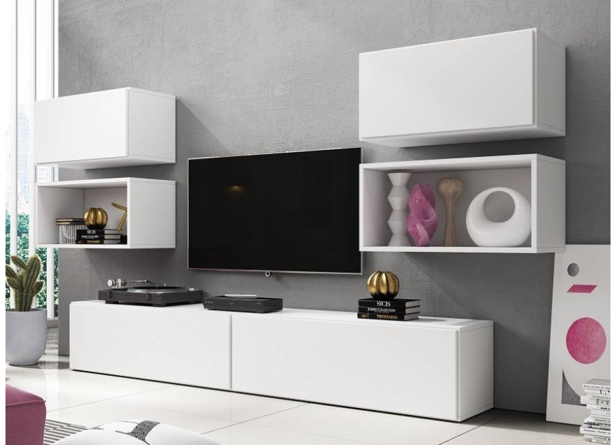 Všetky prvky obývacej steny RAFA sa vyznačujú svojou variabilitou. Sektorové skrinky môžete rozmiestniť ľubo..