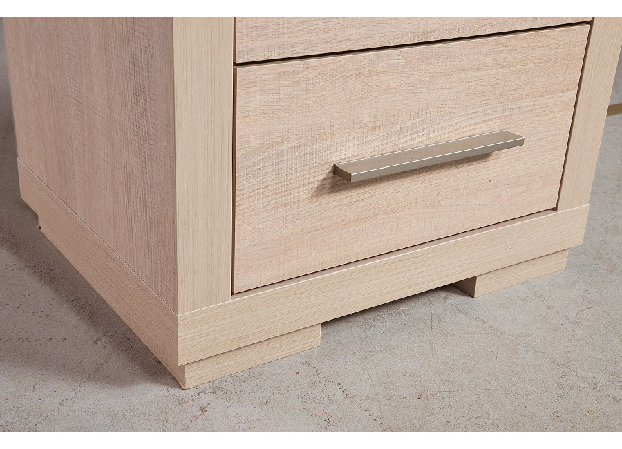 Nábytok VEGAS vo farbe santana svetlý Vás zaujme hrubými kontúrami, bočnice a vrchná a spodná doska majú hrúbku až 4,8cm. Kolekcia má jednoduchý dizajn, ktorý je vhodný do každej miestnosti. Zásuvky sú plnovýsuvné a úchytky kovové.