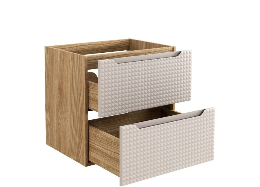 Závesná skrinka pod umývadlo LUXOR Beige zaujme nielen svojim dizajnom. Korpus skrinky je vyrobený z laminovanej drevotriesky vo farbe dub olejovaný. Dvierka skrinky sú z MDF materiálu v elegantnej béžovej matnej farbe, ktorá pridáva na elegantnosti a ladí s modernými interiérmi.