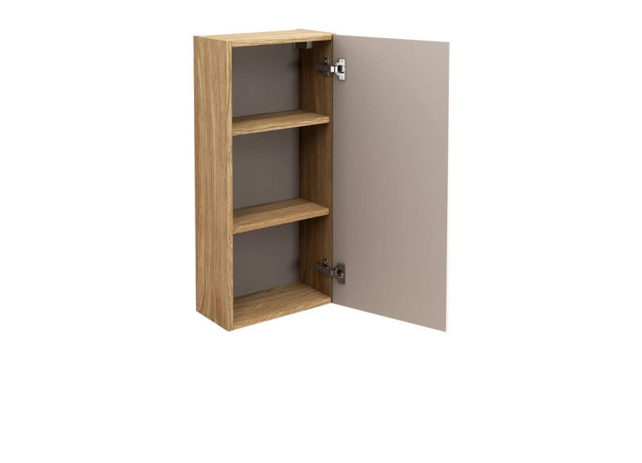 Elegantná a moderná závesná skrinka do kúpeľne LUXOR BEIGE, ktorá prinesie do Vašej kúpeľne štýlový vzhľad a praktické riešenie pre úložný priestor. Táto skrinka je ideálnym doplnkom pre každú kúpeľňu, ktorá chce spojiť funkčnosť s moderným dizajnom. Korpus je vyrobený z laminovanej drevotriesky vo farbe dub olejovaný. Tento materiál dodáva skrinke prirodzený a príjemný vzhľad, ktorý sa hodí do každého interiéru. Dvierka sú vyrobené z MDF materiálu v béžovej matnej farbe, čo pridáva na jej elegantnom a luxusnom dojme.