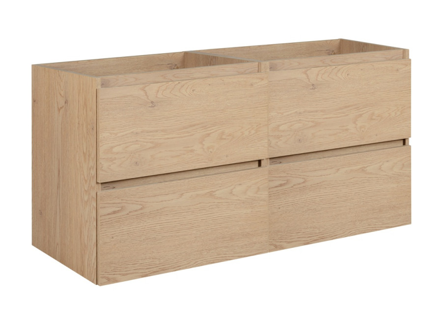 Vyrobená je z kvalitnej laminovanej drevotriesky s ABS hranami, čo zaručuje jej odolnosť voči vlhkosti a dlhú životnosť. Skrinka je vhodná aj pre dvojumývadlo. Jej minimalistický dizajn bez úchytiek v spojení s farebným prevedením dub svetlý dodá kúpeľni moderný a elegantný vzhľad. Vnútorné časti zásuviek v svetlosivej farbe boli navrhnuté s ohľadom na pohodlie a funkčnosť.