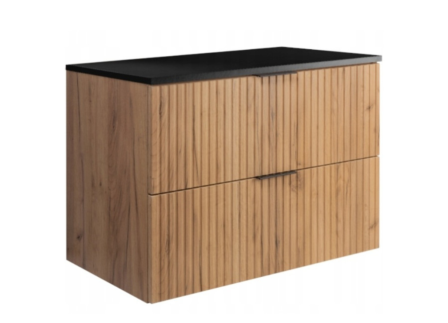 Ak túžite po štýlovom a praktickom kúpeľňovom nábytku, závesná skrinka pod umývadlo FLOW C80DB vo farebnom odtieni dub craft zlatý/čierna je tou správnou voľbou. Kúpeľňová skrinka, so šírkou 80 cm, je zhotovená z laminovanej drevotriesky s hrúbkou 16 mm a doplnená zásuvkami z kvalitného MDF materiálu. Nábytok z kolekcie FLOW je navrhnutý tak, aby spájal moderný dizajn a maximálnu funkcionalitu, čo dokonale vystihujú detaily, ako drážkovaná predná časť zásuvky a systém Soft Close, ktorý zabezpečuje plynulé a tiché zatváranie. Skrinka navyše obsahuje dve sady úchytiek v čiernej a zlatej farbe, ktoré Vám pri montáži umožňujú doladiť finálny vzhľad skrinky.