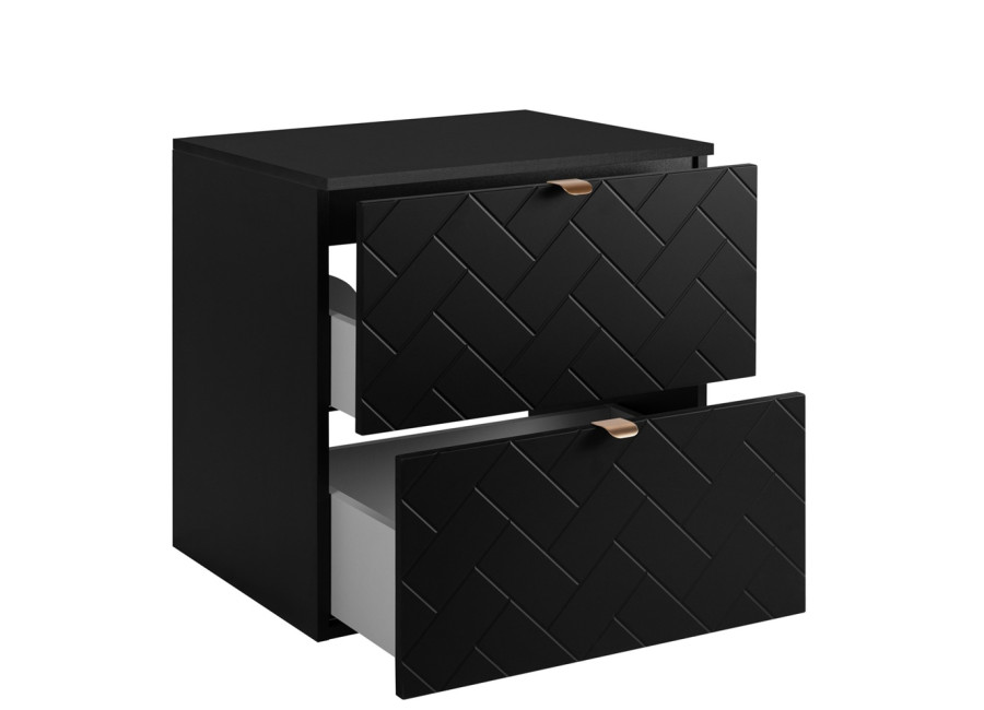 Osviežte svoju kúpeľňu moderným dizajnom s elegantnou závesnou skrinkou pod umývadlo TREND B60DB v štýlovej matnej čiernej farbe. So šírkou 60 cm je ideálna pre menšie kúpeľne, pričom odolná laminovaná drevotrieska s ABS hranami zaručuje vysokú životnosť. Predné časti zásuviek, vyrobené z kvalitného MDF materiálu, zaujmú elegantným vzorom a technológia Soft Close zabezpečuje tiché a hladké zatváranie zásuviek. Súčasťou balenia sú tri rôzne sady úchytiek v čiernej, striebornej a zlatej farbe, vďaka ktorým si môžete skrinku prispôsobiť podľa vlastného vkusu. Ku skrinke je potrebné dokúpiť plochý sifón a vrchné umývadlo.