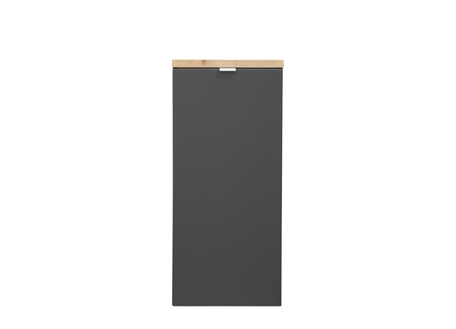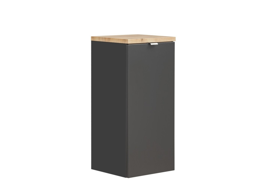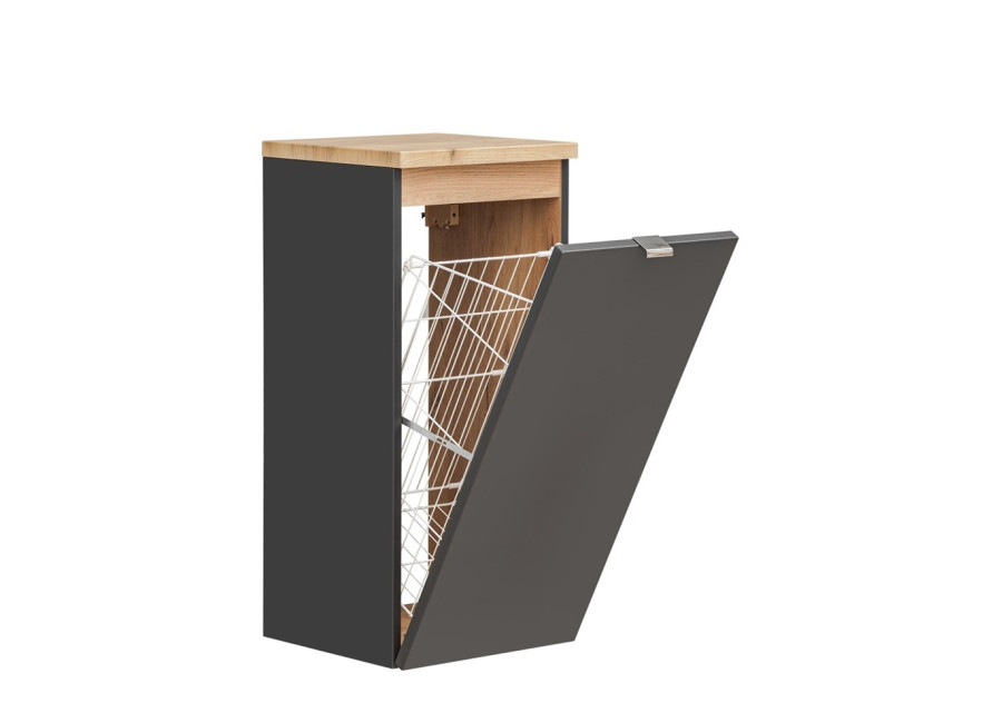 Závesná skrinka COIN 811 s integrovaným košom na prádlo Vám ponúka možnosť vytvoriť dokonale zladený priestor. Kombinácia dekoru čierna matná s vrchnou doskou vo farbe dub craft zlatý vnáša do priestoru sviežosť a moderný nádych. Decentný kovový úchyt dotvára celkový harmonický výraz tejto kúpeľňovej skrinky. Kolekcia COIN zahŕňa všetko od praktických skriniek pod umývadlo až po štýlové závesné moduly a zrkadlové skrinky.